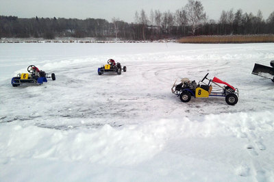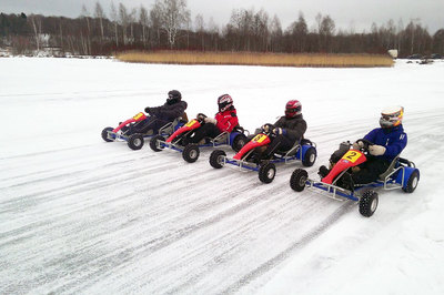 Каждому мужчине иногда хочется за рулем проделать что нибудь такое, чего категорически нельзя делать на дороге общего пользования. Для этого есть ледовый картинг. Мощные спортивные карты на ледовой трассе доставят вам массу эмоций, вибраций и амбиций.