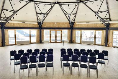 Для конференций мы предоставляем флипчарты и расходники к ним, организуем кофе-брейки. Зал оборудован кондиционерами, что особенно важно в летний период.