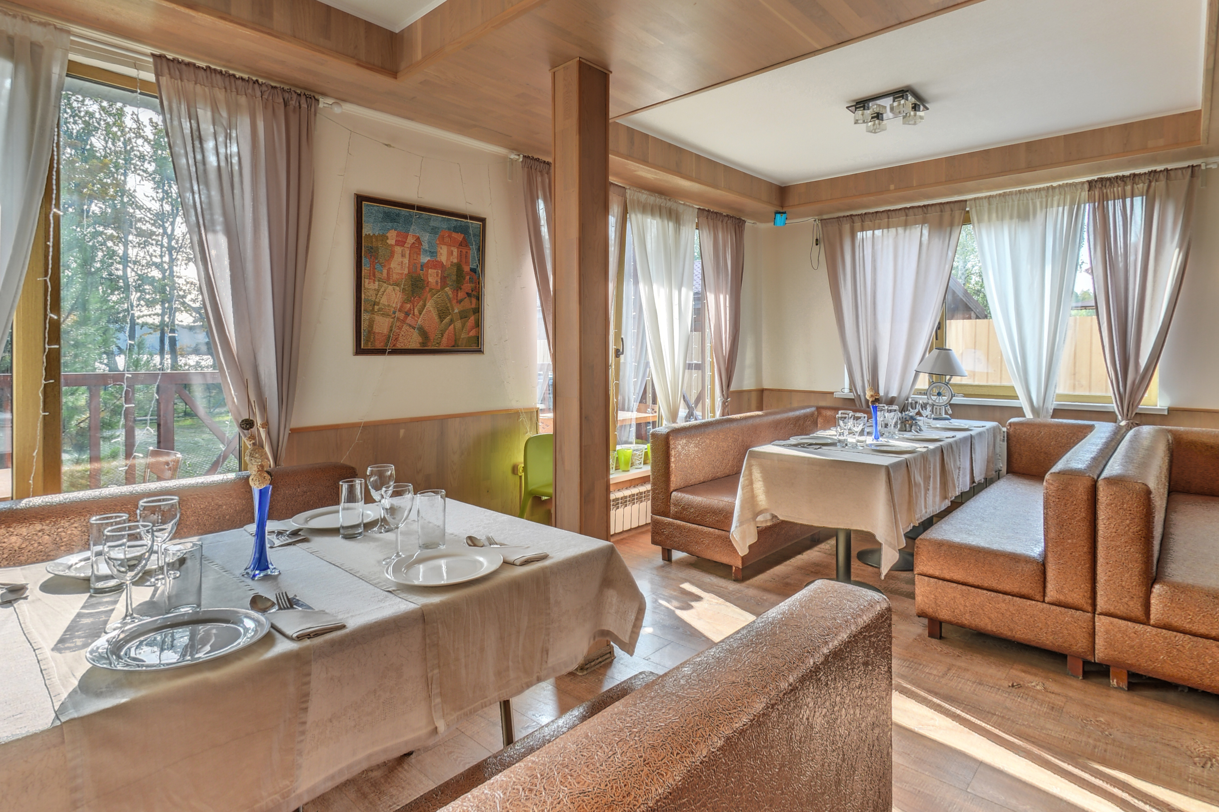 В основном корпусе Трюм находится наш ресторан, где вы сможете отведать широкий выбор блюд русской и европейской кухни. В меню легкие закуски и салаты, основные блюда из мяса, птицы или рыбы, а также десерты. Средний чек - 500-800 руб. Есть детское меню.
